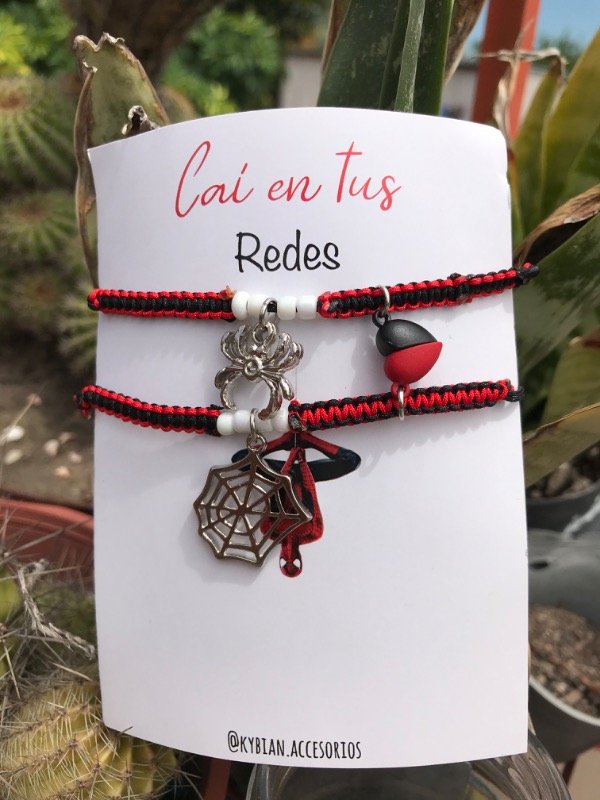 Par de pulseras Hilo chino ajustable, dije niquel e iman.