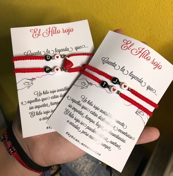 Par de pulseras de hilo chino ajustable, iman y la inicial se personaliza.