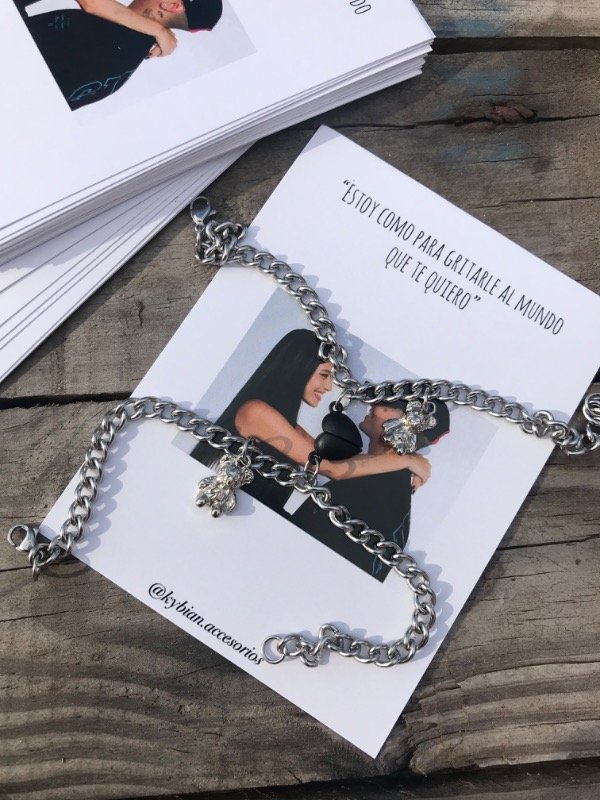 Par de pulseras en acero quirúrgico y dije de iman. (19 cm)