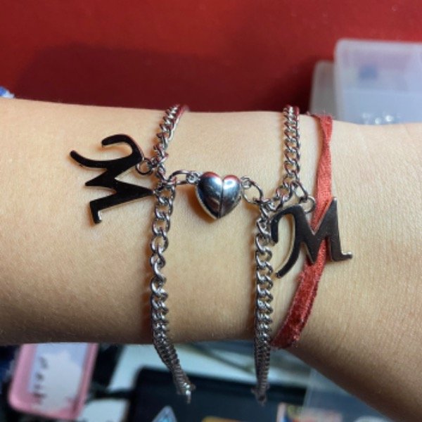 Par de pulseras de acero quirúrgico, letras e iman.