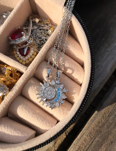 El precio corresponde al par de collares (Mitad sol y mitad luna) Material de la cadena: acero inoxidable Material del dije: cobre bañado (evitar mojar). Medidas: 1,9cm