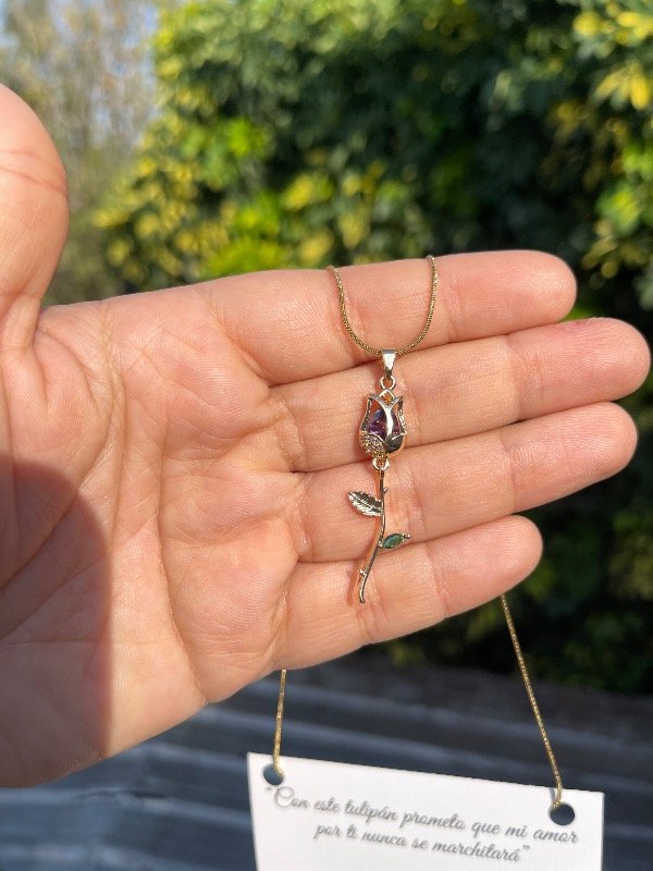 - Tulipan con cubic violeta y micro pave cristal (cobre baño oro)