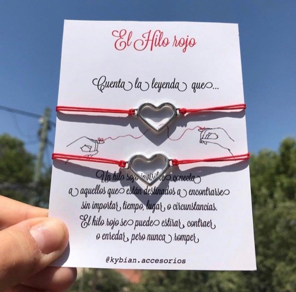 Cuenta una leyenda oriental que las personas destinadas a conocerse están conectadas por un hilo rojo invisible. Este hilo nunca desaparece y permanece constantemente atado a sus dedos, a pesar del tiempo y la distancia.